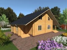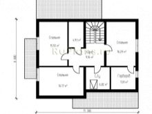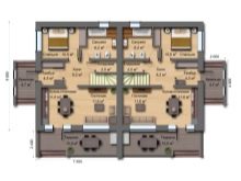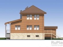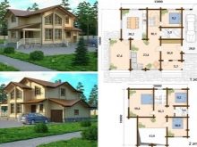 يعد التصميم التالي لمنزل خشبي من طابقين أكثر تنوعًا من المخطط أعلاه.. يحتوي هذا التصميم أيضًا على مدخلين. يؤدي أحدهم إلى الدهليز ثم إلى الصالة المركزية. يوجد في نفس الجزء من المنزل غرفة مرجل يمكن الوصول إليها من الردهة. بشكل عام يمكن تقسيم المنزل إلى 3 أقسام متصلة بواسطة صالة. الحجرة الأولى عبارة عن غرفة نوم وحمام مجاور. الحجرة الثانية عبارة عن غرفة معيشة واسعة ، والثالثة عبارة عن مطبخ وغرفة استحمام. علاوة على ذلك ، المطبخ نفسه كبير نوعًا ما وله إمكانية الوصول إلى شرفة كبيرة..