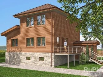 المظهر مثير للاهتمام بما فيه الكفاية. لها شكل مكعب بسقف مائل. يتم تحقيق طول 12 مترًا من خلال شرفة يمكن أن تكون بمثابة مكان للراحة في الطقس الجيد.