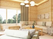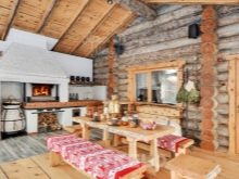 يتميز المدخل من الجانب الآخر بغرفة بخار صغيرة وحمام آخر. من بين هذه الغرف غرفة مرجل ، وهي كبيرة جدًا مقارنة بالغرف غير السكنية الأخرى. يحتوي المنزل على غرفة فسيحة وغرفتي نوم. ظاهريًا ، يبدو المنزل مهيبًا وجذابًا للغاية..