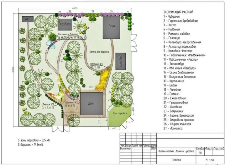 بعد تقسيم المساحة إلى مناطق منفصلة ، يمكنك البدء في تنسيق المناظر الطبيعية للمنطقة.. يجب أيضًا التفكير مسبقًا في عدد الأسرة والأشجار والشجيرات: