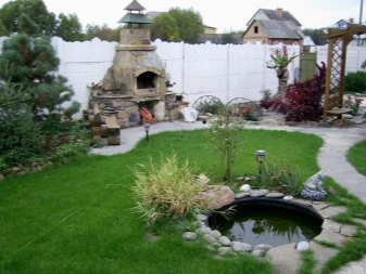 المرحلة الأخيرة من تزيين الموقع هي استخدام العناصر الزخرفية. سوف يجعلون حديقتك أكثر راحة. يمكن استخدام الديكور حتى في منطقة صغيرة. الشيء الرئيسي هو عدم وضع الكثير من عناصر الديكور..