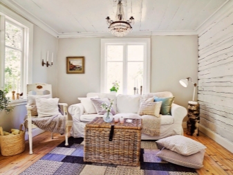 في منزل بسيط خفيف ، يبدو الأثاث ذو الطراز البيئي أو العتيق أو الكلاسيكي أو الباروكي مناسبًا أيضًا. لكن لا ينبغي أن يكون هناك الكثير من التفاصيل خارج الفكرة العامة. على سبيل المثال ، في غرفة المعيشة ، بالإضافة إلى الأثاث البسيط والأنيق ، يمكنك وضع خزانة ذات أدراج قديمة بأرجل قوية مزورة أو كرسي بذراعين قديم منجد بالجلد. مثل هذه التفاصيل ستحول الغرفة إلى مكان مريح حقًا للاسترخاء ، وليس صورة من مجلة لامعة..