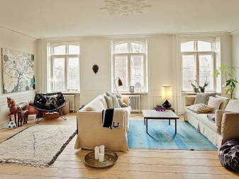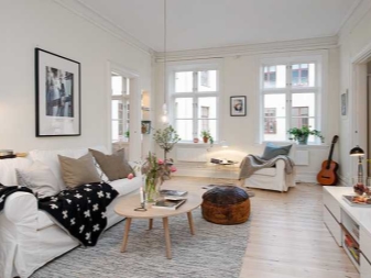 اكتسب هذا الاتجاه الأوروبي الشمالي شعبية خاصة معنا في منتصف القرن الماضي. الحقيقة هي أنه في تلك الأيام كانت جميع الأنماط تتميز بوفرة الديكور والزخارف الزاهية. لذلك ، أصبحت هذه التصميمات الداخلية ذات الإضاءة النقية بمثابة نسمة من الهواء النقي. جذب النمط الاسكندنافي انتباه الشباب في المقام الأول. لقد جمعت تفاصيل الاتجاهات الشعبية مثل بساطتها ، وعرقية وحتى بيئية.