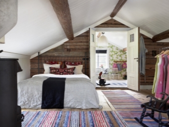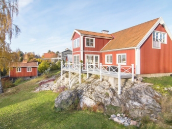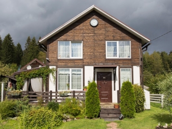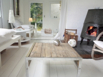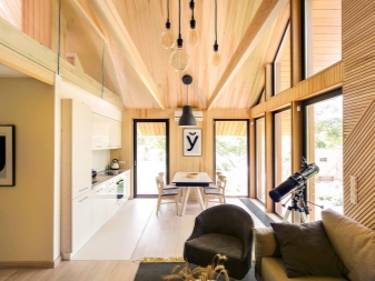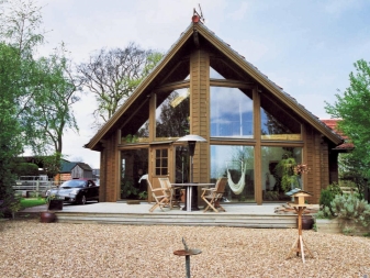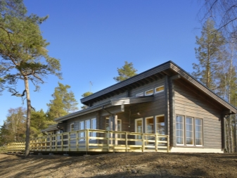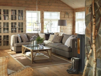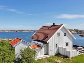 بشكل عام ، في النمط الاسكندنافي ، يتم إيلاء الكثير من الاهتمام للخشب. لا يتم استخدامه فقط في البناء. في الكابينة الخشبية المنخفضة ، غالبًا ما يكون الأثاث مصنوعًا من نفس المادة. وفي الخارج ، تم تزيين المبنى بسلالم خشبية وألواح خشبية وحتى أسقف..
