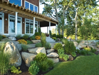 المنزل الخفيف ليس هو الشيء الوحيد الذي يجب أن يكون في منطقة الضواحي. يُنصح بتكميله بنباتات مناسبة ومسارات عشبية وأنيقة. تصميم المناظر الطبيعية للموقع على الطراز الاسكندنافي بسيط للغاية. ستكون البرك الكبيرة أو الشرائح الألبية متعددة الألوان غير ضرورية هنا.. يكفي عدد قليل من أسرة الزهور الأنيقة مع الزهور المعمرة والصنوبريات منخفضة النمو.