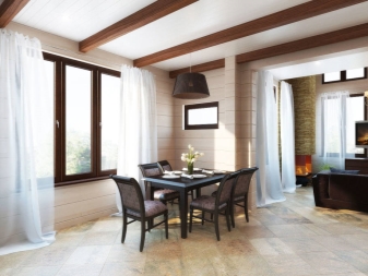 نادراً ما يتم تغطية النوافذ في مثل هذه المنازل بستائر قاتمة أو ستائر من الأقمشة الداكنة أو ستائر تحجب الضوء. كل هذا يمنع أشعة الشمس من دخول المنزل ، لذلك يجدر استبدال الستائر بتول رقيق أو حجاب خفيف أو ستائر شيفون..