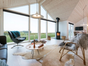 وحتى لا تكون الغرفة باردة ، يستخدم المصممون نوافذ زجاجية مزدوجة موفرة للطاقة ويحاولون عزل النوافذ والأبواب والشرفات. لذلك ، على الرغم من كل شيء ، يكون الجو دافئًا جدًا في المنزل..
