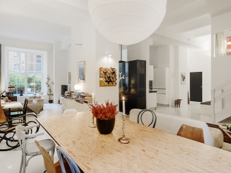 الطراز الاسكندنافي – غرف فسيحة. حتى لو كنت تعيش في كوخ صغير, يجب أن تظل المباني مشرقة وجميلة. لهذا ، يتم استخدام تقنيات بسيطة. على سبيل المثال ، رفض الستائر ، مما يجعل من الممكن السماح بدخول المزيد من الضوء الطبيعي إلى المنزل ، أو الخلفيات الفاتحة والأسطح العاكسة..