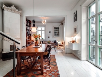 هناك دائمًا بعض التفاصيل العتيقة في هذا الطراز الاسكندنافي. يمكن أن يكون أثاثًا رثًا قديمًا أو إطارات قديمة أو أي تفاصيل أخرى ظهرت هنا كما لو كانت من القرن الماضي. لذلك ، فإن أسهل طريقة هي إعادة إنشاء التصميم الداخلي الاسكندنافي الكلاسيكي ليس في المباني الجديدة ، ولكن في تلك الغرف التي تخص والديك أو جداتك..