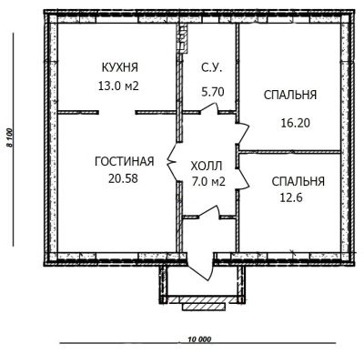 اعتمادًا على حجم المنزل ، قد يكون هناك عدة غرف نوم – من غرفة نوم واحدة إلى ثلاث غرف نوم. علاوة على ذلك ، يوجد في معظم المشاريع غرفة معيشة ومطبخ مشتركة. في كثير من الأحيان يكون مطبخ منفصل وقاعة.. يعتمد حجم الغرف على حجم المنزل وعدد الغرف المطلوبة. في الواقع ، في نفس المساحة ، يمكنك وضع غرفة نوم واحدة كبيرة أو غرفتين صغيرتين على سبيل المثال.