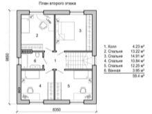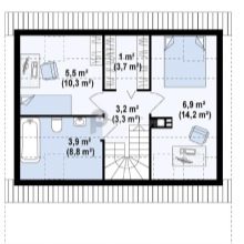 في هذه الحالة ، يتم تخصيص أرضية العلية لغرف النوم.. بالإضافة إلى ذلك ، يمكن وضع شرفة هناك يتم الخروج منها من غرف النوم. يمكن أن تكون إما شرفة مشتركة أو شرفتين منفصلتين. للراحة ، يوجد حمام ثانٍ في الطابق العلوي.