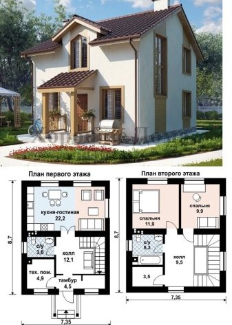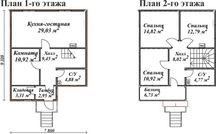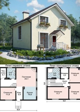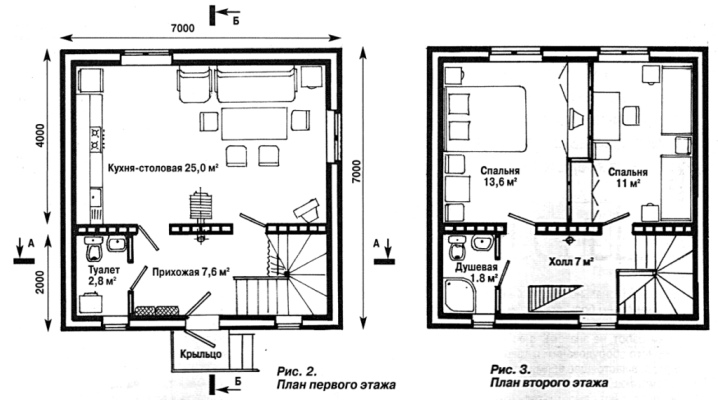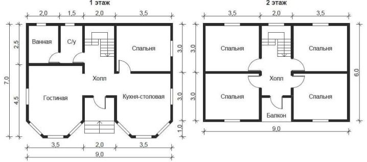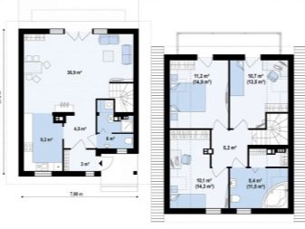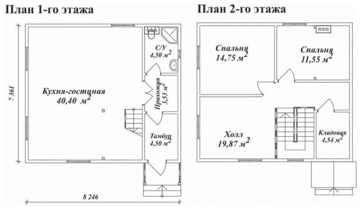 يحتوي الطابق الأول على صالة ومطبخ وغرفة معيشة وحمام وحمام. عادة ما تكون هناك مساحة كافية لغرفتين أخريين ، يمكن أن تكونا غرف نوم ، إذا لزم الأمر ، ودور حضانة. يوجد في الطابق الثاني مساحة كافية لثلاث أو حتى أربع غرف – كل هذا يتوقف على عدد الأمتار المخططة لتخصيصها ، وعلى مساحة المنزل نفسه.