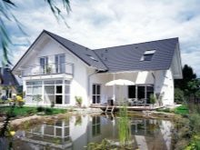 هذا النوع من البناء هو بلا شك غير نمطي.. تم بناء المنزل من الطوب ، وبعد ذلك يتم حياكته بانحياز. الكسوة في ظلال صامتة ، والنوافذ الجانبية العلية موجودة على السقف المنحدر. الشرفة الأرضية مزينة بأعمدة ، وكلها تبدو متناغمة للغاية.