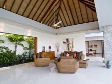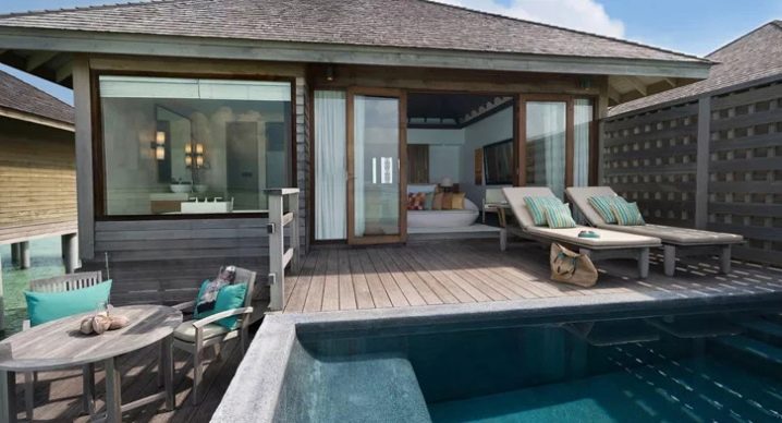 - شرفة مفتوحة مع مسبح بجانب البنغل.