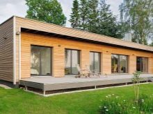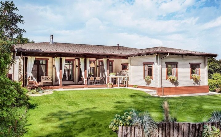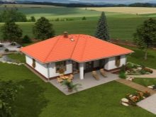 يفترض مشروع المنزل وجود سقوف منخفضة ، في مخطط المبنى توجد مساحة كبيرة ، كل شيء يقع أفقيًا. إذا رغبت في ذلك ، داخل البنغل ، يمكنك تجهيز حمام سباحة ، إذا سمحت المنطقة بذلك. يتضح أن مثل هذا المبنى قرفصاء ، مما يعني أن السلالم غير ضرورية ، بينما يتم استخدام المساحة بأقصى قدر من الكفاءة ، يجب ألا يكون هناك مساحة غير مستخدمة ، حيث يؤدي كل جزء من المنزل مهمته.