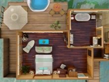 من أجل أن يلبي المنزل نوع البنغل بالكامل ، يجب أن يتم بناؤه من مواد طبيعية – الخشب ، الخيزران ، الحجر الطبيعي. هيكل العقار غير قياسي إلى حد ما ، كما ذكرنا سابقًا ، في الوسط توجد غرفة المعيشة ، وحولها جميع الغرف الأخرى والمطبخ وغيرها..