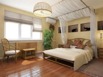 فيما يتعلق بالديكور والمنسوجات ، فإن أغطية الأسرة الجميلة مناسبة ، ويمكن استبدال الستائر بالستائر الخشبية أو المصنوعة من الخيزران التي تتناسب مع الأسلوب. إذا كنت تفضل خيارًا أكثر تقليدية ، فاختر الستائر المصنوعة من القماش الصلب. يمكن تزيين عتبات النوافذ بالورود والبونساي والأواني.