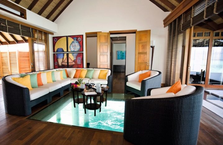 اعتمادًا على نوع البنغل ، قد يكون التصميم الداخلي مختلفًا, الشيء الرئيسي هو اتباع القواعد الأساسية واستخدام كل المساحة بحكمة. قد يشبه مخطط الألوان الرئيسي الصحراء ، لذلك يجب أن تسود في الغرفة درجات اللون البيج والأصفر والذهبي والأزرق. إذا قمت بتثبيت مثل هذا التثبيت بنفسك على الفور ، فيمكنك بسهولة التقاط جميع العناصر الداخلية ، بما في ذلك الأثاث والديكور والإضاءة والملحقات..