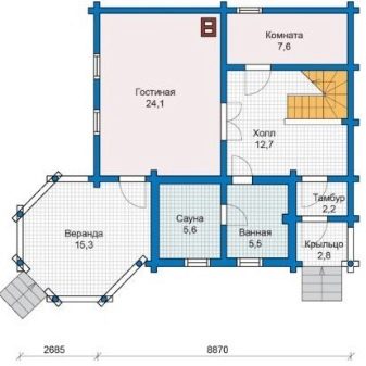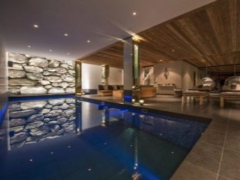 لذلك ، غالبًا ما يتم نقل الساونا في منزل الشاليه إلى الطابق السفلي ، المجهز بعزل حراري جيد. وحتى بالنسبة لترتيب حمام سباحة صغير ، يمكن أن يبقى المكان.