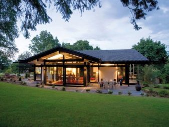 - ضوء النهار. النوافذ البانورامية الكبيرة هي القاعدة لمثل هذا المبنى. إنها تساعد على إغراق المنزل بالنور حرفيًا. بفضل هذا الحل ، يندمج المبنى جزئيًا مع المناظر الطبيعية المحيطة ، وتكون الغرف مضاءة. هذا أيضًا عنصر من عناصر الراحة العامة والهدوء والجو الهادئ..