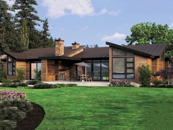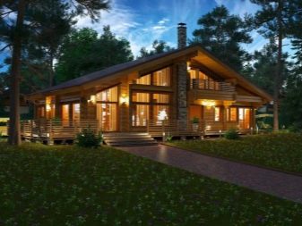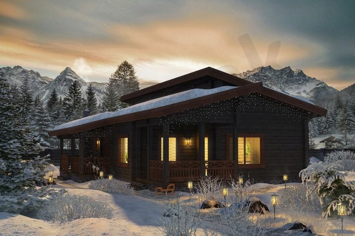 - منزل مظلم بنوافذ مضيئة وسقف غير عادي – يمكن أن يكون الشاليه من هذا القبيل. بسيطة ولكنها مريحة بشكل مزعج ومكتفية ذاتيًا ولا تتطلب ديكورًا إضافيًا.