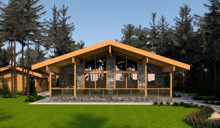 - سقف منحدر بزاوية شديدة الانحدار. يتم ذلك حتى يتدحرج هطول الأمطار من تلقاء نفسه. الشاليهات متأصلة في المناطق ذات المناخ القاسي ، وبالتالي ، بدون هذه اللحظة التكنولوجية ، لا مكان. غالبًا ما يبدو سقف الجملون هذا ضخمًا جدًا ، ويبرز خارج صندوق المبنى بمقدار نصف متر ، أو حتى مترًا (حسب نسب الهيكل). سيتم أيضًا حماية جزء صغير من الأرض بالقرب من المنزل من هطول الأمطار..