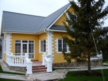 لمثل هذا الهيكل المريح ، فإن الأساس الشريطي الخرساني المقوى مناسب. بالنسبة للسقف ، يمكنك استخدام البلاط المعدني. يوفر المشروع أبوابًا معدنية ونوافذ مزدوجة من البلاستيك المعدني.