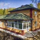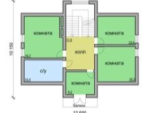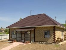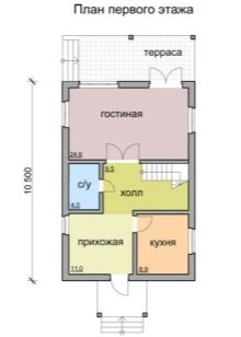 وفقًا للخطة ، فإن الأساس نفسه مناسب لمثل هذا المسكن كما في الخيار أعلاه. بالنسبة للسقف ، يجدر أيضًا استخدام البلاط المعدني..