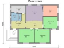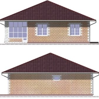 بناءً على الخطة ، يجب بناء هذا الهيكل الجذاب المكون من طابق واحد على أساس شريط خرساني مقوى مع لوح مشترك. بالنسبة للسقف ، يُنصح باستخدام بلاط معدني جميل وعالي الجودة..