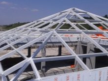- تركيب سقف مبنى سكني من كتل التدفئة الحديثة, تحتاج إلى إيلاء اهتمام خاص لنظام الجمالون. يجب أن يكون هذا الهيكل مصنوعًا من الخشب عالي الجودة أو المعدن عالي القوة. يُسمح باستخدام أي مواد وأغطية تسقيف تقريبًا. يعتمد اختيار خيار معين فقط على تفضيلات المالكين وقدراتهم المالية..