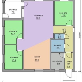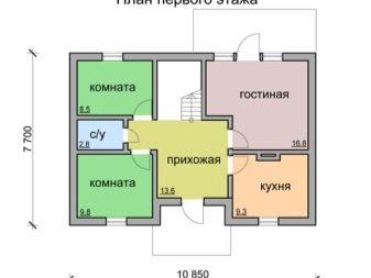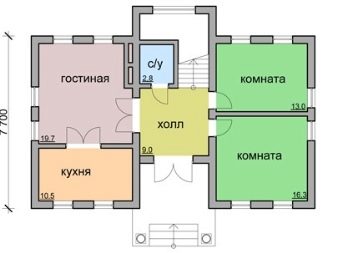 - تؤدي قاعة المدخل إلى غرفتين – غرفة مرجل 6 أمتار مربعة. م وصالة 7.8 متر مربع. م ؛