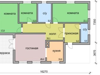 - من القاعة 16.1 متر مربع. م يمكن الوصول إلى غرفة 21.1 متر مربع. م وكذلك في الحمام الثاني 8 متر مربع. م وغرفة ثانية 10.5 متر مربع. م ؛