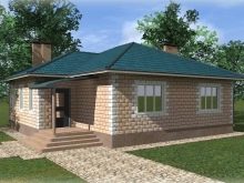 دعنا نحلل مشروعًا بسيطًا وجذابًا آخر لمسكن من طابق واحد مصنوع من الكتل الحرارية بمساحة إجمالية تبلغ 109.6 مترًا مربعًا. م (منطقة المعيشة – 61.7 متر مربع). يمكن وضع الغرف الوظيفية التالية في منزل مريح: