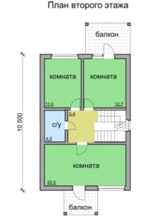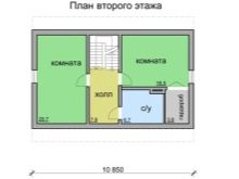 خيار آخر هو منزل جميل ومريح من طابقين بمساحة إجمالية تبلغ 111 مترًا مربعًا. م (منطقة المعيشة – 68.8 متر مربع. م). في مبنى جذاب وموثوق في الطابق الأول ، يوفر المشروع تنظيم الغرف التالية: