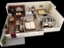 - من القاعة ، بدورها ، مجهزة بإمكانية الوصول إلى الحمام 4.4 متر مربع. م وحمام 1.2 متر مربع. م ؛