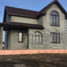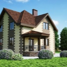 فكر في مشروع آخر مثير للاهتمام لمبنى سكني متين مصنوع من كتل التدفئة بمساحة إجمالية قدرها 150 مترًا مربعًا. م (منطقة المعيشة – 106.2 متر مربع).