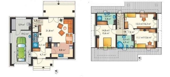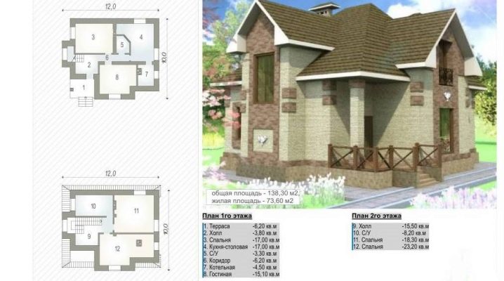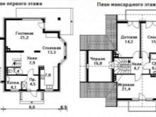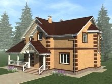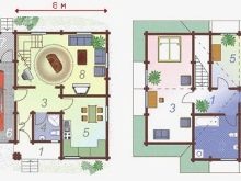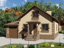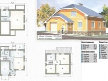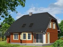 غالبًا ما تستخدم مثل هذه المشاريع النموذجية لبناء المنازل الريفية ، حيث سيعيش أصحابها على مدار السنة. الطابق الأرضي سوف يستوعب مطبخ ، غرفة طعام ، غرفة معيشة ، صالة ، مدخل ، غرفة تقنية.
