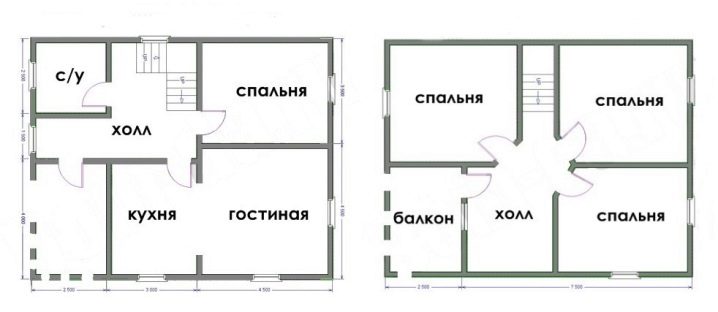يمكن “تقسيم” الطابق الأول من المبنى إلى مطبخ مدمج مع غرفة طعام وقاعة مدخل وغرفة معيشة وشرفة. يمكن أن يستوعب الطابق العلوي شرفة وغرفتي نوم وقاعة. إذا رغبت في ذلك ، في الطابق العلوي ، بدلاً من غرفة النوم ، يمكنك تجهيز ورشة عمل أو دراسة. أو انقل غرفة النوم في الطابق العلوي والورشة إلى الطابق العلوي.