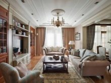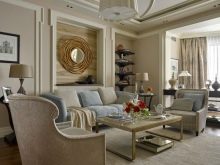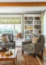 كل شيء بسيط نسبيًا هنا. يفترض هذا النمط الداخلي أثاثًا كبيرًا ومريحًا. يتم تشجيع استخدام الخزانات المدمجة ، والتي هي أفضل من نظيراتها الفردية. المقاعد والوسائد المقتضبة بصريًا مطلوبة.