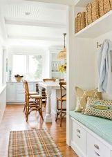 الرواق غالبًا ما يكون مهجورًا تمامًا. بدلاً من ذلك ، ينظمون غرفة معيشة عند المدخل مباشرةً. وبالفعل يتطور بسلاسة إلى المطبخ ومنطقة تناول الطعام. ومع ذلك ، من المهم الاهتمام بخصوصيتك.. لذلك ، يتم عزل جميع المباني الشخصية البحتة بعناية..