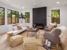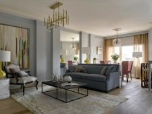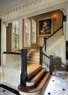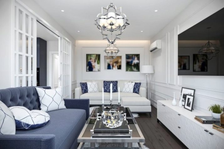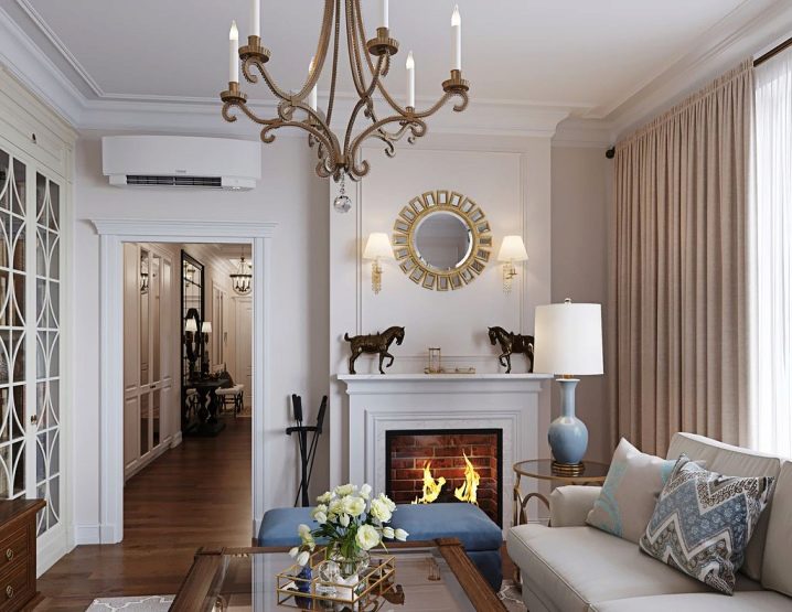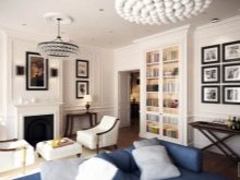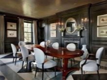 في نسخة أخرى ، يكون مركز الغرفة عبارة عن طاولة ذات سطح طاولة غامق للغاية ، يقف عليها تمثال حصان وحيد. الوسائد على الأرائك المستقيمة بسيطة وحسن الذوق. يبدو أيضًا جدارًا به العديد من النوافذ الصغيرة جميلًا جدًا. تبين أن إناء مصباح الطاولة مناسب للغاية. يصعب تزيين السقف ، وليس على نفس المستوى لجعله يبدو أكثر تشويقًا.