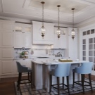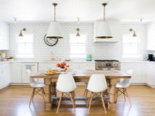 من المناسب استخدام ثريا جميلة في هذه الغرفة.. ولكن نظرًا لأن الكلاسيكيات الأمريكية هي أيضًا أسلوب عملي في المقام الأول ، فأنت بحاجة إلى التفكير في مدى سهولة العناية بنموذج معين.. الميزات الرائعة هي الخزائن ذات الوجهين والأرفف ذات الأرفف من خلال الأرفف ، كما ينصح بتوفير طاولة بار وأريكة ، وأخذ مجموعة من الخشب أو بتقليد جيد من الخشب.
