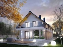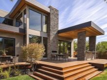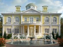 قبل إنشاء المشروع ، يتم تحديد النمط المعماري للمنزل الريفي المستقبلي ، والموقع الداخلي ، وشكل الشرفة وحجمها ، وموقع وشكل النوافذ ، بالإضافة إلى تفاصيل أخرى للواجهة تعتمد عليه.
