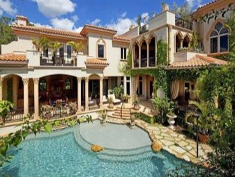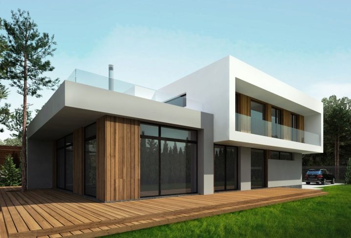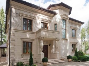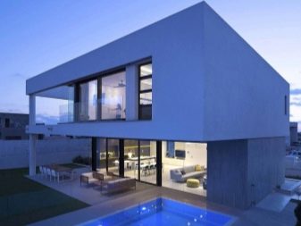 تم تشطيبها بالجص ، غالبًا في ظلال فاتحة ، يتم تثبيت نوافذ بانورامية ، والسقف مغطى بالبلاط.