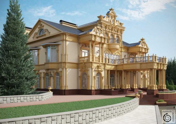 أكواخ من تقاليد القصر الملكي: ذات أعمدة كبيرة ، وقباب متعددة المستويات ، ودرابزين ، وأعمدة. وفرة من العناصر الزخرفية مميزة. غالبًا ما توجد أجنحة المبنى بزاوية مع الجزء المركزي.