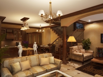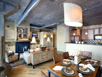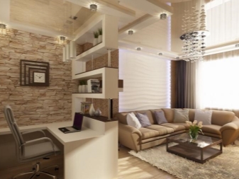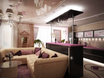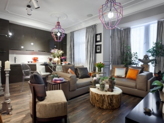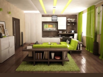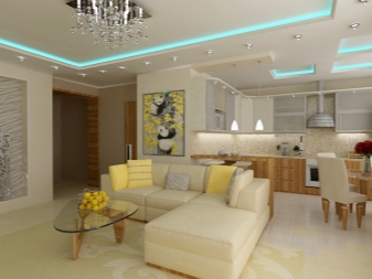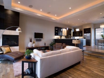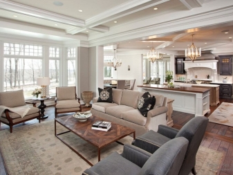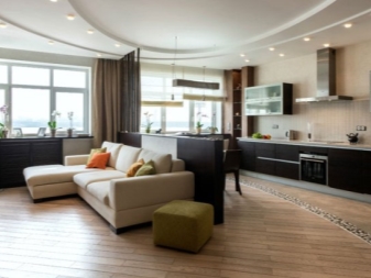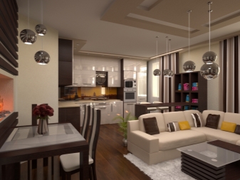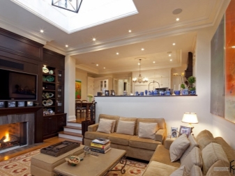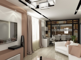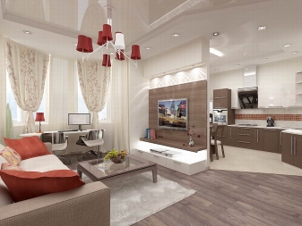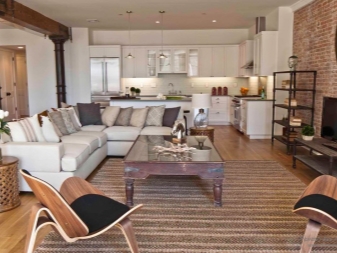 في كثير من الأحيان يتم الجمع بين غرفة المعيشة وغرف أخرى. في أغلب الأحيان ، هذا هو بالضبط المطبخ. يتيح لك هذا التصميم البسيط الطهي من أجل متعتك أثناء مشاهدة أسرتك. نادراً ما توجد منطقة عمل ومنطقة لتناول الطعام في المطبخ. هذا يعني أن الغرف المدمجة هي اكتشاف مفيد..