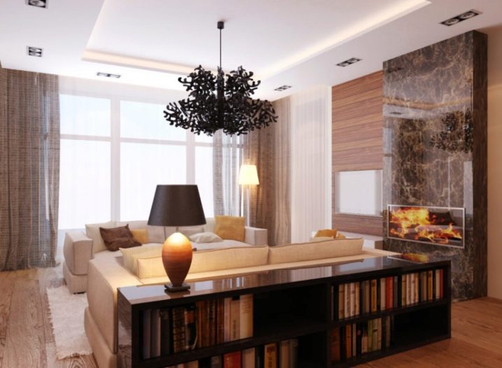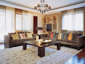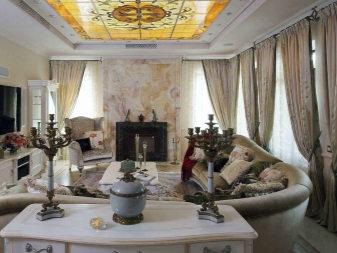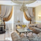 يمكنك أيضًا اختيار ستائر مختلفة لغرفة المعيشة. الخيار الأفضل هو ستائر الأرضية ، وهي مناسبة لكل من غرفة المعيشة الكلاسيكية والغرفة الحديثة..