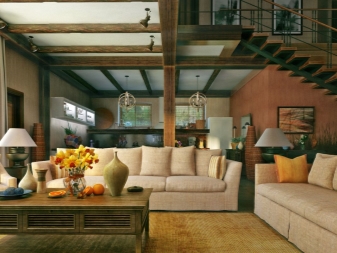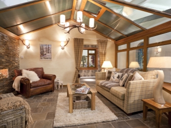 اختر النمط الذي يعجبك ، أو حاول أن تجعل التصميم الداخلي لغرفة المعيشة الخاصة بك في مبنى كوخ أو في البلد يتطابق تمامًا مع باقي الغرف في المنزل. كل هذا يتوقف على خيالك وميزانيتك.