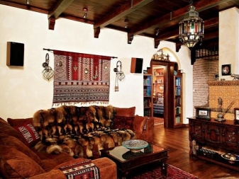 إذا كنت تريد شيئًا غير عادي ، فقم بتزيين غرفة المعيشة بأسلوب عرقي. ستساعدك الألوان الغنية والتفاصيل المثيرة للاهتمام على الانغماس في أجواء المدن الأفريقية الساخنة.