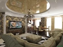 إذا قمت بتقسيم المساحة بشكل صحيح إلى مناطق ، فيمكنك في غرفة المعيشة العثور على مكان ليس فقط للأرائك والطاولات. في كثير من الأحيان ، تحتوي غرفة المعيشة أيضًا على منطقة لتناول الطعام أو مكان للعمل أو صالة ألعاب رياضية صغيرة. بالطبع ، من الصعب تجهيز غرفة صغيرة بهذه الطريقة. ولكن إذا كان لديك غرفة كبيرة ، فيمكنك استخدام جميع الأفكار المقترحة بأمان..